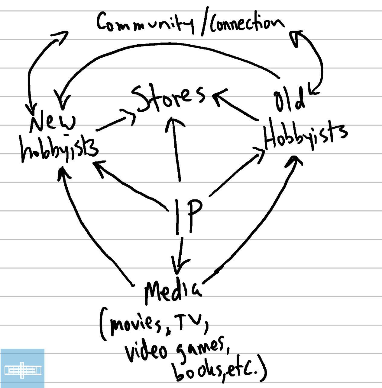 Time is needed to establish nostalgia-based IP like GW has compiled over the last 40+ years. It takes decades for the first generation of players to become parents, caregivers, aunts, uncles, etc. to pass down their love of the hobby. Once this gets started, however, it becomes self-reinforcing.