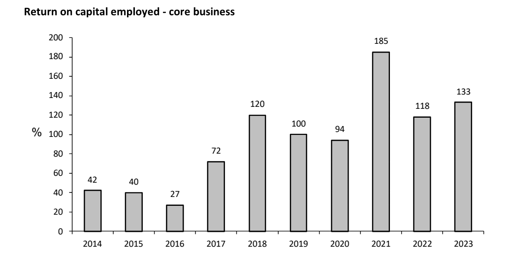 “We measure our long-term success by seeking a high return on investment. In the short term, we measure our success on our ability to grow sales whilst maintaining our core operating profit margin at current levels.”
