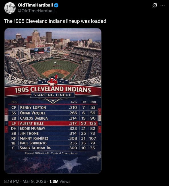The dominant 1995 Indians starting lineup recently made its rounds on Twitter and caused a lot of debate.