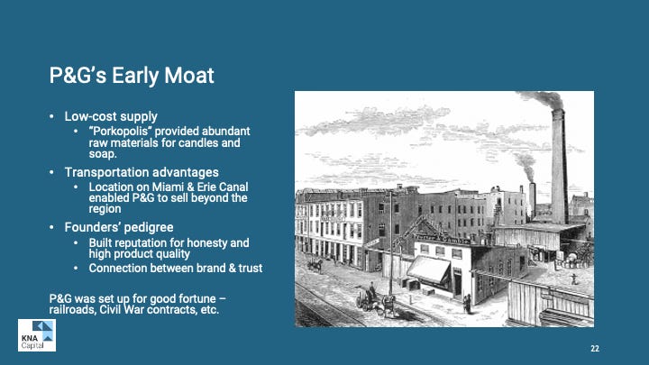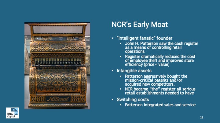 What stood out to me about P&G and NCR wasn’t just their success, but their founders’ intentional approach to value creation. They identified their moat sources early and relentlessly invested behind them. They doubled down on what their competitors couldn’t replicate and widened the gap over time.